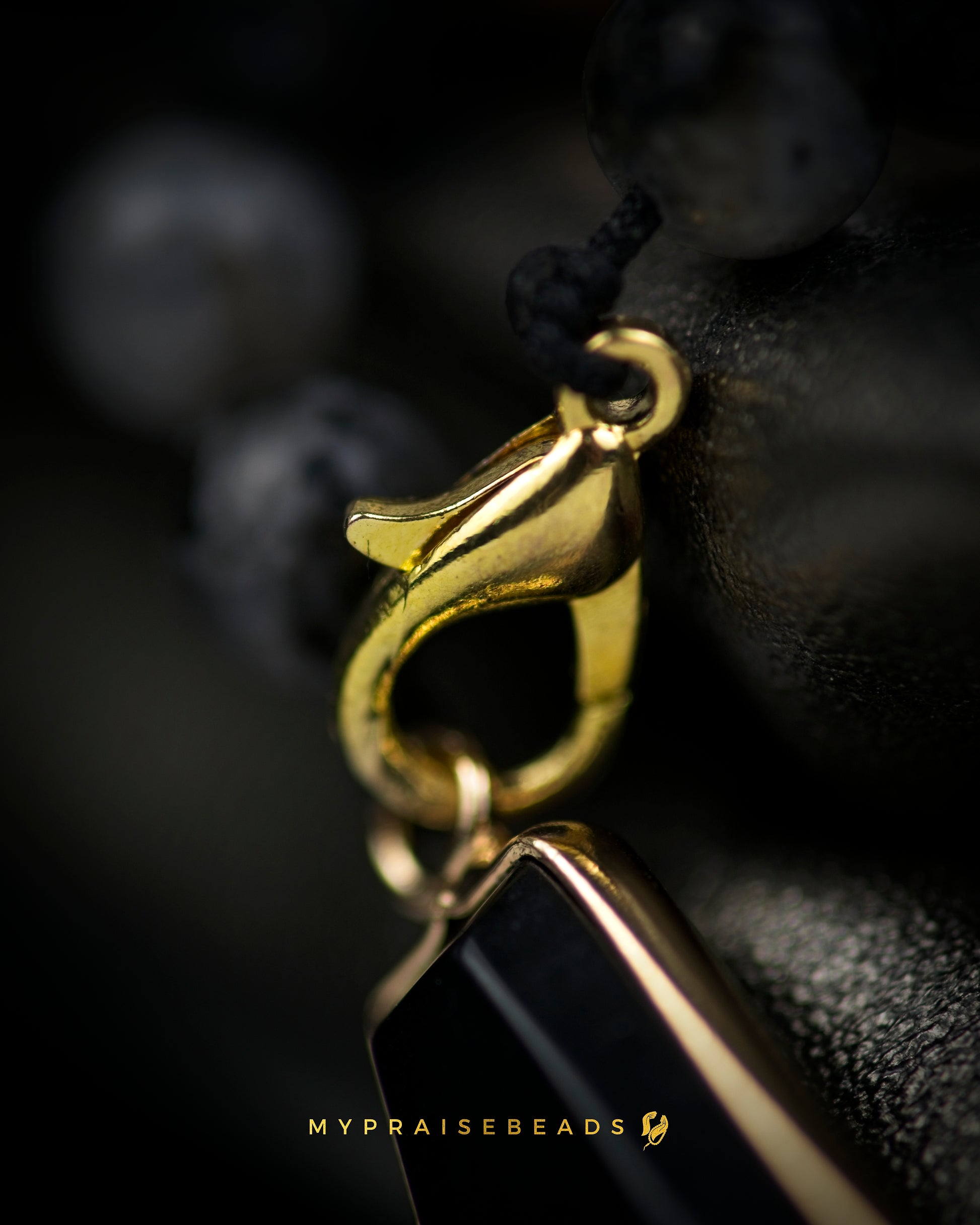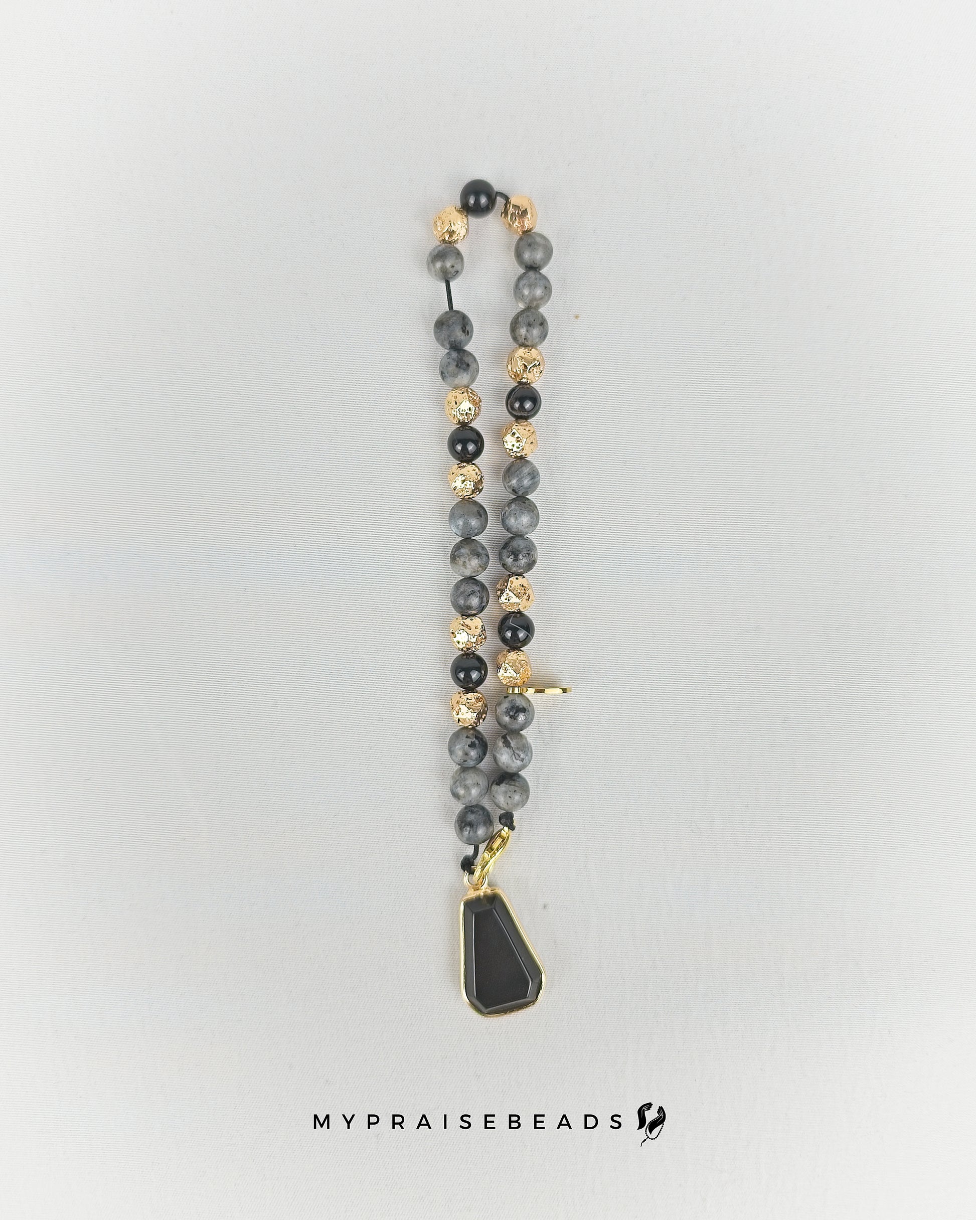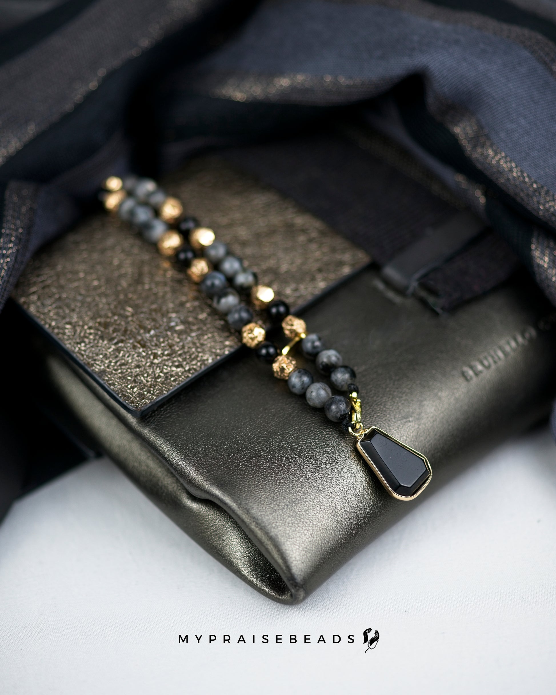 This piece consists of beautiful labradorite and hematite beads combined with a black agate pendant.